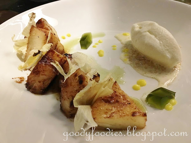 Before the main event, we had a couple of appetizers, starting with the Hokkaido Bay Scallop (RM48). Two plump scallops are grilled, and served with a green pea moussoline, potato straw and crispy bacon. We enjoyed this, wish we had listened to our server and ordered two portions of this.