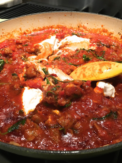 Whenever I'm in Los Angeles, instead of cooking I watch the Food Network and make mental notes about what I want to make when I get home. Usually my brain floods up with those ideas and I rarely remember any of them, but this particular recipe stuck in my head. I made it on Friday night and have been eating leftovers all weekend. It's a simple sauce made up of sweet sausage, marinara sauce and loads of arugula. I followed this recipe but I used one pound of sweet Italian sausage, an entire bottle of marinara sauce, and greek yogurt instead of mascarpone cheese to lighten it up a bit. I also served it over polenta instead of a baked potato (and it would also be perfect over pasta or spaghetti squash). Next up this week, the other recipe that stuck in my head... s'more truffles!